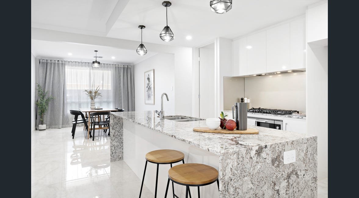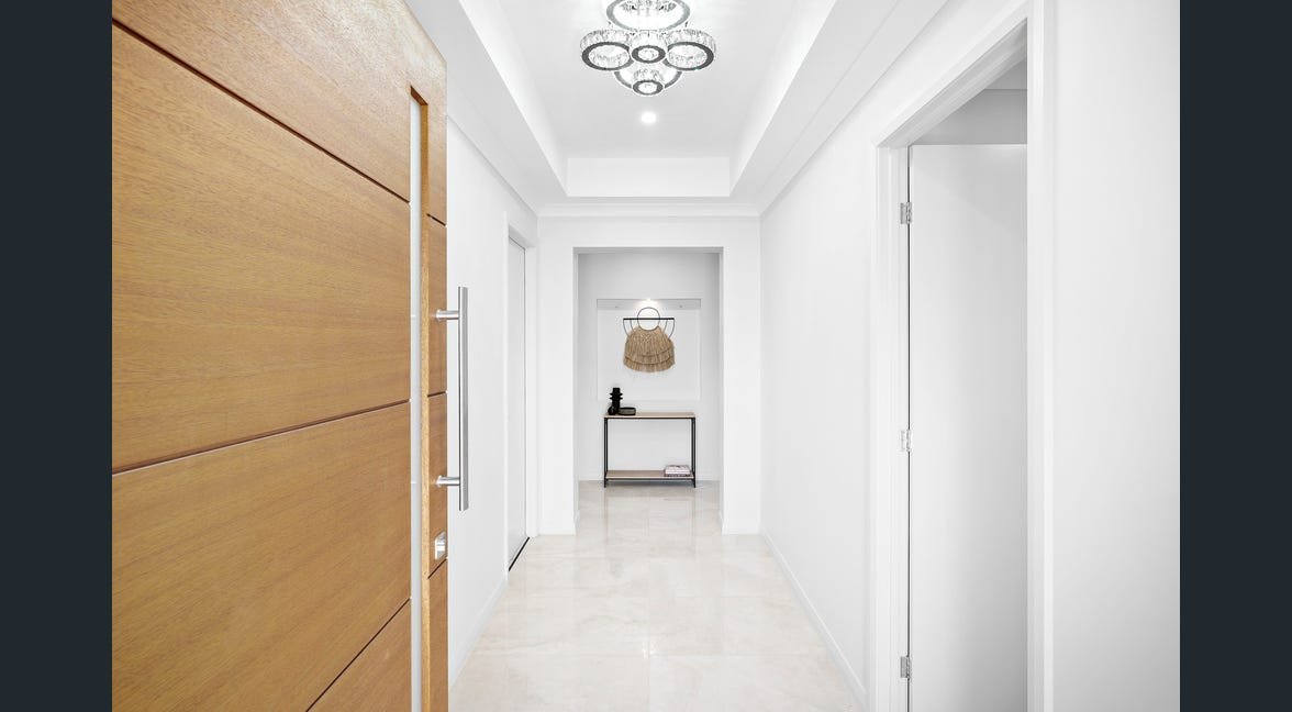 The interior showcases neutral tones, glossy tiled flooring. At the heart of this home is a gourmet kitchen, complete with a double sink, stone countertops, and ample cupboard storage. Culinary enthusiasts will delight in the premium 90 cm gas cooktop. The chef’s kitchen is complemented by a generously sized butler’s pantry, offering extra storage and preparation space, making it ideal for entertaining. Effortlessly flowing into the living area, it creates the perfect setting for family gatherings and entertaining.