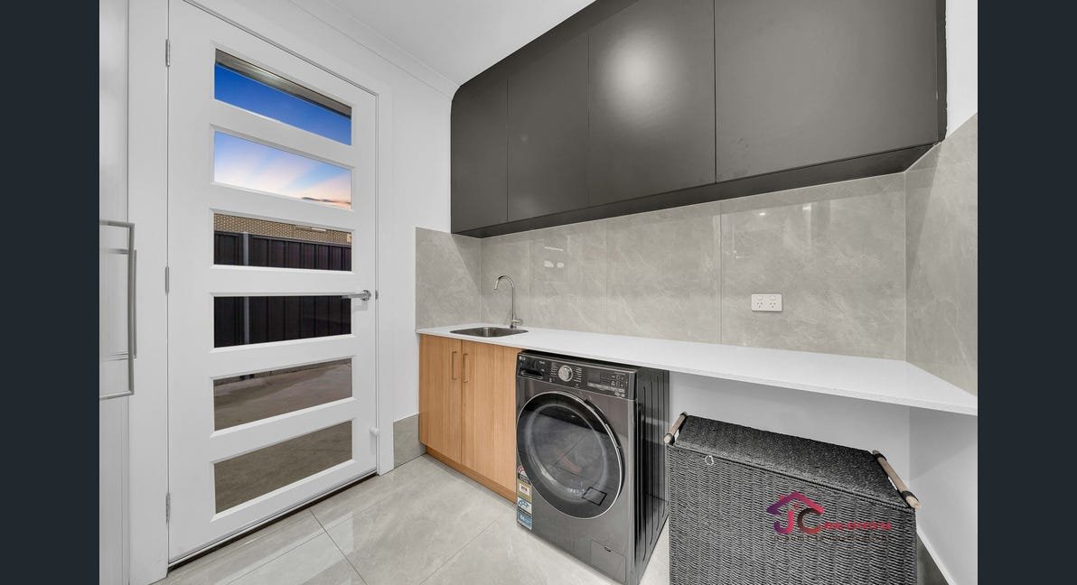Step into the thoughtfully designed laundry room, where style meets functionality. This space boasts high-quality finishes and ample storage, ensuring that laundry day is both efficient and enjoyable. The room features sleek countertops, providing plenty of space for sorting and folding. Custom cabinetry offers generous storage for all your laundry essentials, keeping the area organized and clutter-free.